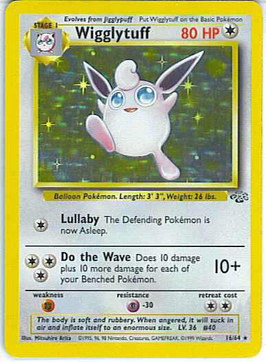 | Type | Colorless | | Pokemon serie | Jungle | | Stadie | Stage 1 | | HP | 80 | | Sjældenhed | Rare | | Tilbagetrækning | 2 | | Modstand | P | | Svaghed | F | | Kortnummer | 16 | | Evne |