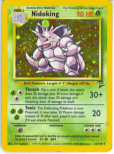[CCG] Thrash (30+) Flip a coin. If heads, this attack does 30 damage plus 10 more damage; If tails, this attack does 30 damage plus Nidoking does 10 damage to self.