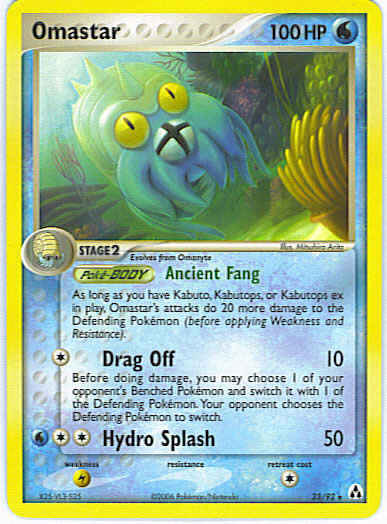 | Type | Water | | Pokemon serie | Legend Maker | | Stadie | Stage 2 | | HP | 100 | | Sjældenhed | Rare | | Tilbagetrækning | 1 | | Svaghed | L | | Kortnummer | 23 | | Evne |