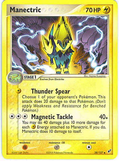 [CCC] Magnetic Tackle (40+) You may do 40 damage plus 10 more damage for each L Energy attached to Manectric. If you do, Manectric does 10 damage to itself.