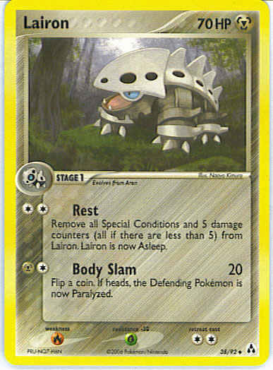 Evne2[CC] Rest - Remove all Special Conditions and 5 damage counters (all if there are less than 5) from Lairon. Lairon is now Asleep.