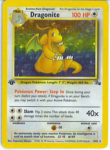 | Type | Colorless | | Pokemon serie | Fossil | | Stadie | Stage 2 | | HP | 100 | | Sjældenhed | Rare | | Tilbagetrækning | 1 | | Modstand | F | | Kortnummer | 4 | | Evne |