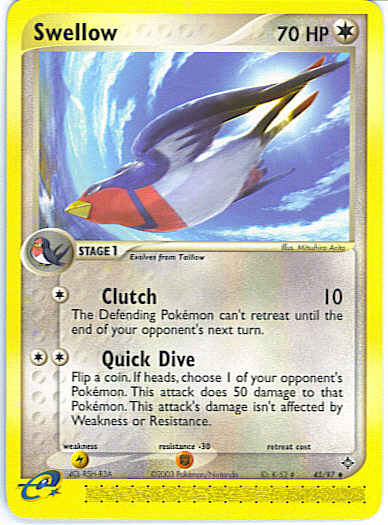 [CC] Quick Dive - Flip a coin. If heads, choose 1 of your opponent's Pokemon. This attack does 50 damage to that Pokemon. This attack's damage isn't affected by Weakness or Resistance.