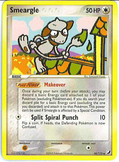 | Type | Colorless | | Pokemon serie | Unseen Forces | | Stadie | Basic | | HP | 50 | | Sjældenhed | Uncommon | | Tilbagetrækning | 1 | | Svaghed | F | | Kortnummer | 48 | | Evne | [C] Split Spiral Punch (10) Flip a coin. If heads, the Defending Pokemon is now Confused. | | Evne2 | [C] Split Spiral Punch (10) Flip a coin. If heads, the Defending Pokemon is now Confused. | | Kunstner | Sumiyoshi Kizuki |