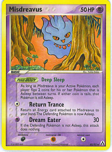 Evne[C] Return Trance - Return an Energy card attached to Misdreavus to your hand. The Defending Pokemon is now Asleep.
