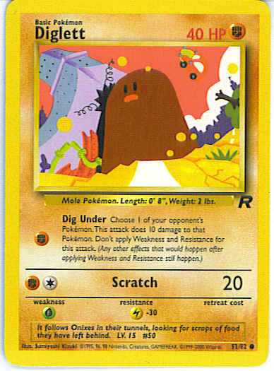 [F] Dig Under - Choose 1 of your opponent's Pokemon. This attack does 10 damage to that Pokemon. Don't apply Weakness and Resistance for this attack. (Any other effects that would happen after Applying Weakness and Resistance still happen.)