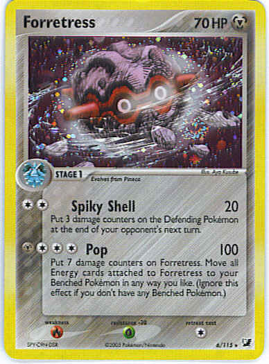 [CCCM] Pop (100) Put 7 damage counters on Forretress. Move all Energy cards attached to Forretress to your Benched Pokemon in any way you like. (Ignore this effect if you don't have any Benched Pokemon.)