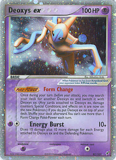 Evne on it are now on the new Pokemon.) If you do, put Deoxys ex on top of your deck. Shuffle your deck afterward. You can't use more than 1 Form Change Poke-Power each turn. (Poke-POWER)