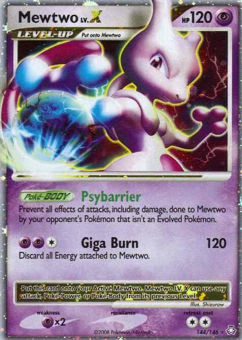 | Type | Psychic | | Pokemon serie | Legends Awakened | | Stadie | Level Up | | HP | 120.0 | | Sjældenhed | Ultra-Rare | | Tilbagetrækning | 2.0 | | Svaghed | Px2 | | Kortnummer | 144 | | Evne | of attacks, including damage, done to Mewtwo by your opponent's Pokemon that isn't an Evolved Pokemon. (Poke-BODY)