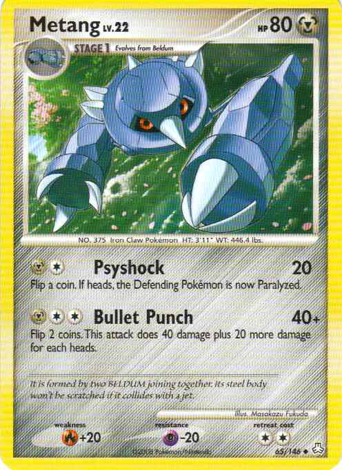 | Type | Metal | | Pokemon serie | Legends Awakened | | Stadie | Stage 1 | | HP | 80.0 | | Sjældenhed | Uncommon | | Tilbagetrækning | 2.0 | | Modstand | P-20 | | Svaghed | R+20 | | Kortnummer | 65 | | Evne |