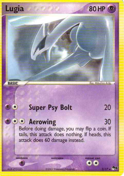 | Type | Psychic | | Pokemon serie | OP Series 5 | | Stadie | Basic | | HP | 80 | | Sjældenhed | Rare | | Tilbagetrækning | 2 | | Svaghed | P | | Kortnummer | 2 | | Evne | [CP] Super Psy Bolt (20) [CCP] Aerowing (30) Before doing damage, you may flip a coin. If tails, this attack does nothing. If heads, this attack does 60 damage instead.