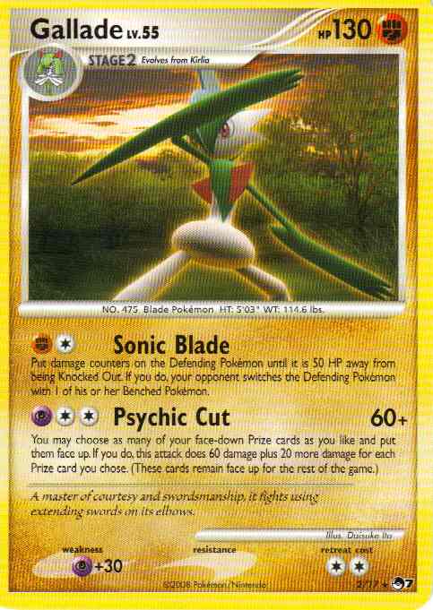| Type | Fighting | | Pokemon serie | OP Series 7 | | Stadie | Stage 2 | | HP | 130.0 | | Sjældenhed | Rare | | Tilbagetrækning | 2.0 | | Svaghed | P+30 | | Kortnummer | 2 | | Evne | [CF] Sonic Blade - Put Damage counters on the Defending Pokemon until it is 50 HP away from being Knocked Out. If you do, your opponent switches the Defending Pokemon with 1 of his or her Benched Pokemon. [CCP] Psychic Cut (60+) You may choose as many of your face-down Prize cards as you like and put them face up. If you do, this attack does 60 damage plus 20 more damage for each Prize card you choose. (These cards remain face up for the rest of the game.)