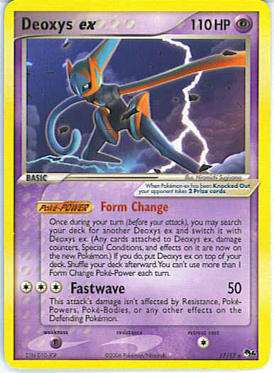 Evne on it are now on the new Pokemon.) If you do, put Deoxys ex on top of your deck. Shuffle your deck afterward. You can't use more than 1 Form Change Poke-Power each turn. (Poke-POWER)
