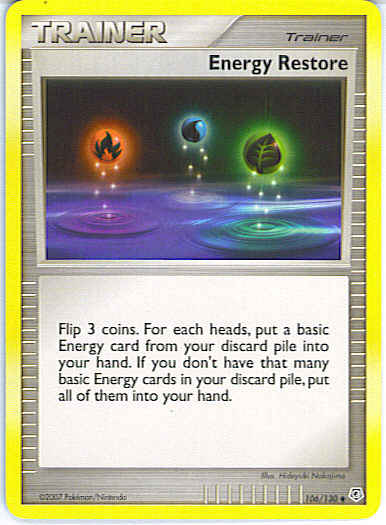 Evne Flip 3 coins. For each heads, put a basic Energy card from your discard pile into your hand. If you don't have that many basic Energy cards in your discard pile, put all of them into your hand.