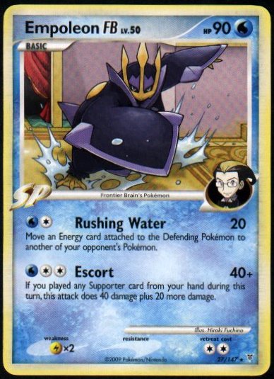 | Type | Water | | Pokemon serie | Supreme Victors | | Stadie | Basic | | HP | 90 | | Sjældenhed | Rare | | Tilbagetrækning | 2 | | Svaghed | Lx2 | | Kortnummer | 27 | | Evne |
