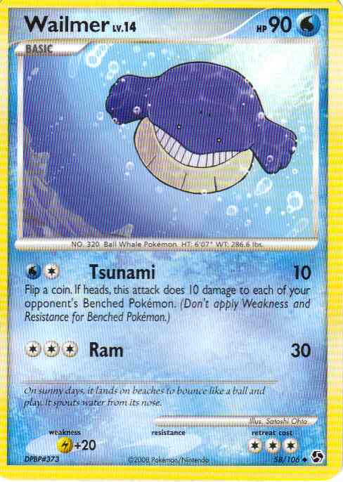 Evne[CW] Tsunami (10) Flip a coin. If heads, this attack does 10 damage to each of your opponent's Benched Pokemon. (Don't apply Weakness and Resistance for Benched Pokemon.)