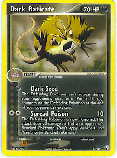 Evne[D] Dark Seed - The Defending Pokemon can't retreat during your opponent's next turn. Put 5 damage counters on the Defending Pokemon at the end of your opponent's next turn.