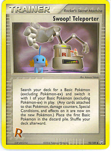 Search your deck for a Basic Pokemon (excluding Pokemon-ex) and switch it with 1 of your Basic Pokemon (excluding Pokemon-ex) in play. (Any cards attached to that Pokemon, damage counters, Special Conditions, and effects on it are now on the new Pokemon.) Place the first Basic Pokemon in the discard pile. Shuffle your deck afterward.