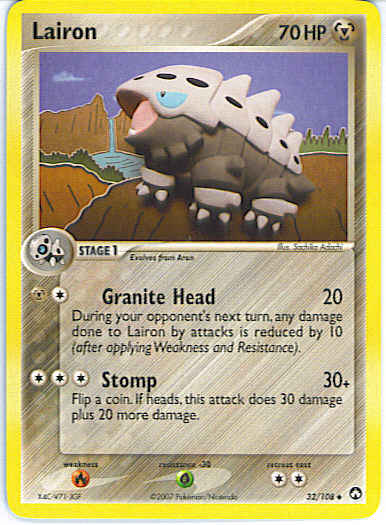 Evne [CM] Granite Head (20) During your opponent's next turn, any damage done to Lairon by attacks is reduced by 10 (after applying Weakness and Resistance).
