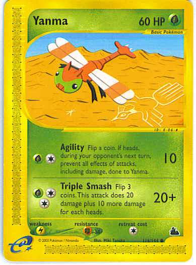 Evne2[CG] Agility (10) Flip a coin. If heads, during your opponent's next turn prevent all effects of attacks, including damage, done to Yanma.