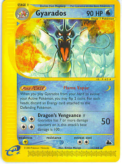 Evne2[CCCW] Dragon's Vengeance (50) If Gyarados has 7 or more damage counters on it, this attack's base damage is 100.