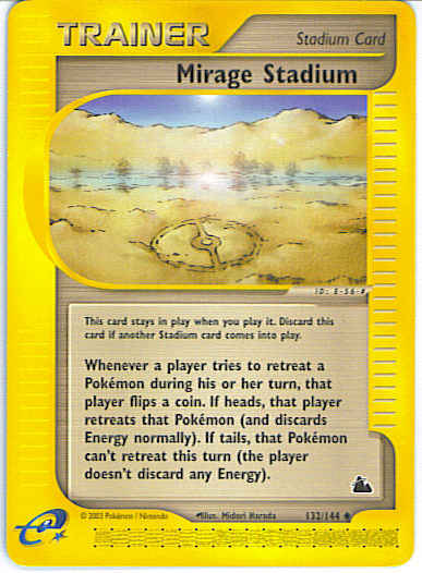| Type | Trainer | | Pokemon serie | Skyridge | | Stadie | Trainer (Stadium) | | Sjældenhed | Uncommon | | Kortnummer | 132 | | Evne | Whenever a player tries to Retreat a Pokemon during his or her turn, that player flips a coin. If heads, that player retreats that Pokemon (and discards Energy normally). If tails, that Pokemon can't Retreat this turn (the player doesn't discard any Energy).