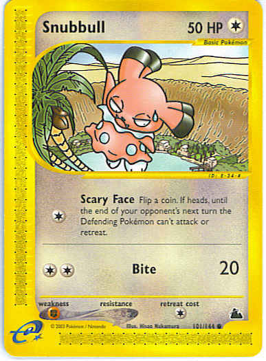 Evne2[C] Scary Face - Flip a coin. If heads, until the end of your opponent's next turn the Defending Pokemon can't Retreat.
