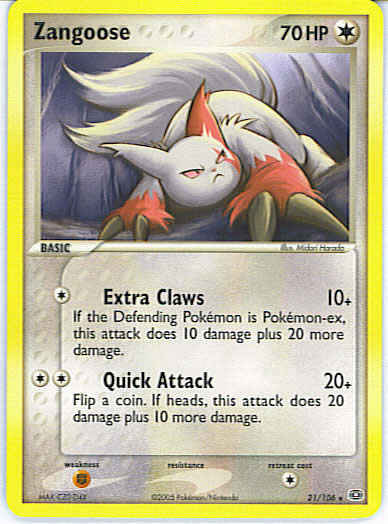 Evne [C] Extra Claws (10+) If the Defending Pokemon is Pokemon-ex, this attack does 10 damage plus 20 more damage.