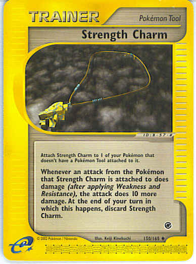 Evne Whenever an attack from the Pokemon that Strength Charm is attached to does damage (after applying Weakness and Resistance), the attack does 10 more damage. At the end of the turn in which this happens, discard Strength Charm.