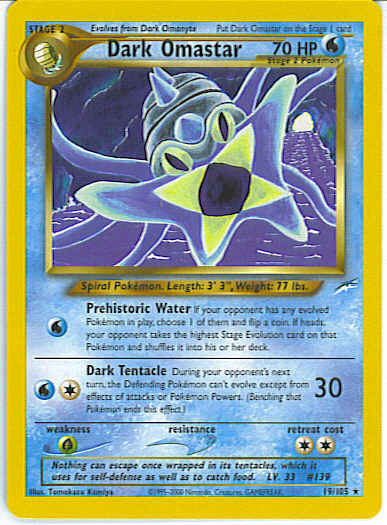 Evne2 [W] Prehistoric Water - Flip a coin. If heads, and if your opponent has any Evolved Pokemon, choose 1 of them and shuffle the top Evolution card attached to that Pokemon into your opponent's deck.