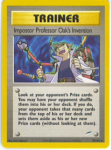 Evne Look at all of your opponent's Prizes. If you wish, you may then shuffle them into his or her deck. Place a number of cards from the top of his or her deck equal to the number of Prizes he or she had before. These cards become his or her new Prizes.