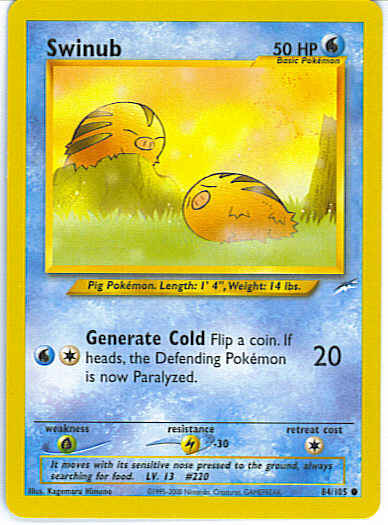 | Type | Water | | Pokemon serie | Neo Destiny | | Stadie | Basic | | HP | 50 | | Sjældenhed | Common | | Tilbagetrækning | 1 | | Modstand | L | | Svaghed | G | | Kortnummer | 84 | | Evne |