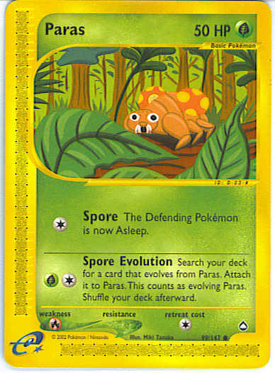 [CG] Spore Evolution - Search your deck for a card that evolves from Paras and put that card on Paras. (This counts as evolving Paras.) Shuffle your deck afterward.