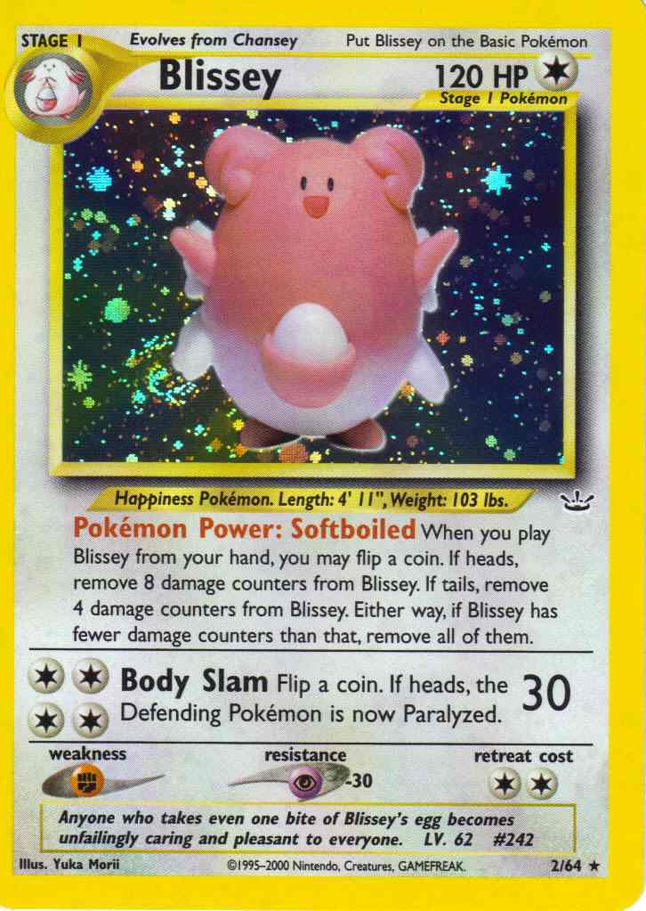 | Type | Colorless | | Pokemon serie | Neo Revelation | | Stadie | Stage 1 | | HP | 120 | | Sjældenhed | Rare | | Tilbagetrækning | 2 | | Modstand | P | | Svaghed | F | | Kortnummer | 2 | | Evne |