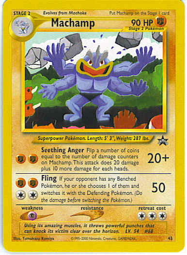 Evne [FF] Seething Anger (20+) Flip a number of coins equal to the number of damage counters on Machamp. This attack does 20 damage plus 10 more damage for each heads.
