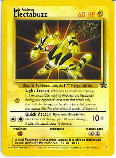 Evne [L] Light Screen - Whenever an attack does damage to Electabuzz (after applying Weakness and Resistance) during your opponent's next turn, that attack only does half the damage to Electabuzz (rounded down to the nearest 10). (Any other effects still happen.)