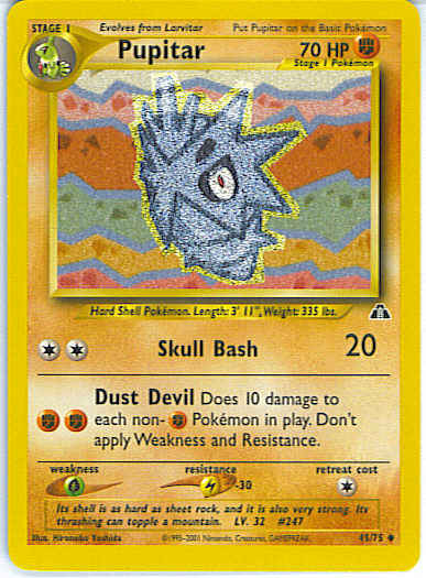 | Type | Fighting | | Pokemon serie | Neo Discovery | | Stadie | Stage 1 | | HP | 70 | | Sjældenhed | Uncommon | | Tilbagetrækning | 1 | | Modstand | L | | Svaghed | G | | Kortnummer | 45 | | Evne |