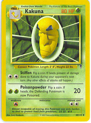 [CC] Stiffen - Flip a coin. If heads, prevent all damage done to Kakuna during opponent's next turn. (any other effects of attacks still happen.)
