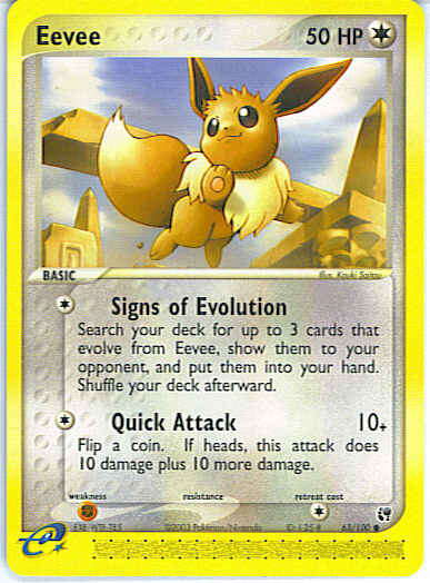 Evne2[C] Signs of Evolution - Search your deck for up to 3 cards that evolve from Eevee, Show them to your opponent, and put them into your Hand. Shuffle your deck afterward.