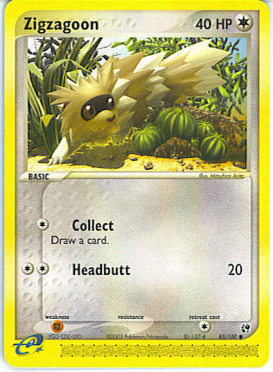 | Type | Colorless | | Pokemon serie | Sandstorm | | Stadie | Basic | | HP | 40 | | Sjældenhed | Common | | Tilbagetrækning | 1 | | Svaghed | F | | Kortnummer | 85 | | Evne | [C] Collect - Draw a card. [CC] Headbutt (20)