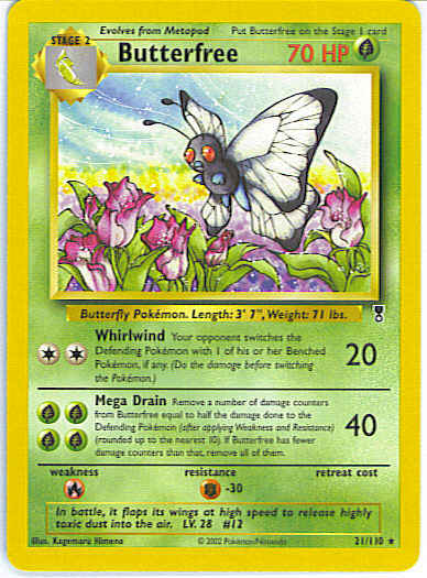 [GGGG] Mega Drain (40) Remove a number of damage counters from Butterfree equal to half the damage done to the Defending Pokemon (after applying Weakness and Resistance) (rounded up to the nearest 10).