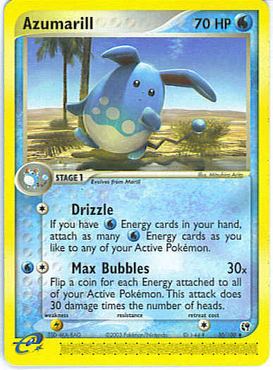 Evne2[C] Drizzle - If you have W Energy cards in your hand, attach as many W Energy cards as you like to any of your Active Pokemon.