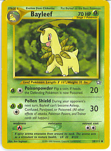 [CGG] Pollen Shield (30) During your opponent's next turn, Bayleef can't become Asleep, Confused, Paralyzed, or Poisoned. (All other effects of attacks, Pokemon Powers, and Trainer cards still happen.)