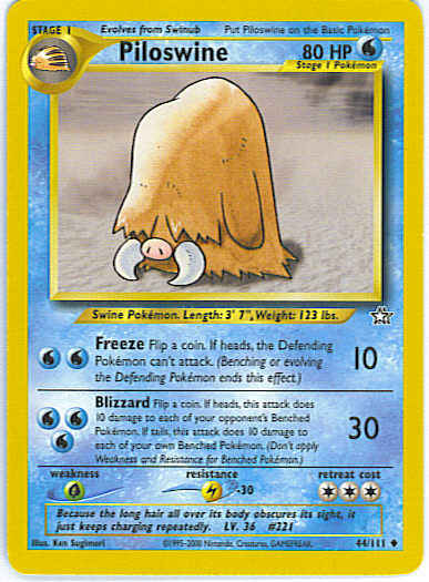 [WWW] Blizzard (30) Flip a coin. If heads, this attack does 10 damage to each of your opponent's Benched Pokemon. If tails, this attack does 10 damage to each of your own Benched Pokemon. (Don't apply Weakness and Resistance for Benched Pokemon.)