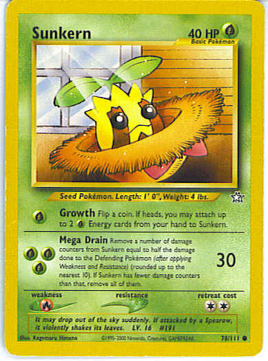 [GGG] Mega Drain (30) Remove a number of damage counters from Sunkern equal to half the damage done to the Defending Pokemon (after applying Weakness and Resistance) (rounded up to the nearest 10). If Sunkern has fewer damage counters than that, remove all of them.